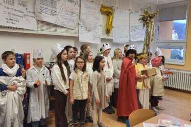 V prosinci se konala třídní vánoční přespávačka, která se nesla v příjemné a pohodové atmosféře. Společně jsme si pustili vánoční film, hráli různé hry a nechybělo ani rozdáv