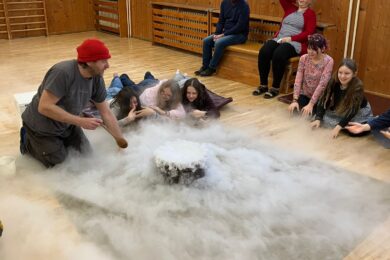 Začal měsíc únor a s ním taky druhé pololetí. 16. února k nám přijel pán, který nám ukázal suchý led. A také co se stane, když ho hodíme do vařící vody. Také po nás chtěl, abyc