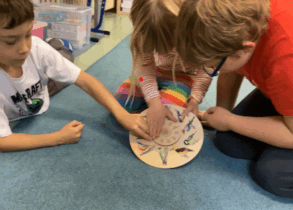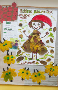 V rámci naší účasti na projektu Recyklohraní se snažíme recyklovat i biomateriál, který nacházíme v blízkosti školky při našich vycházkách.